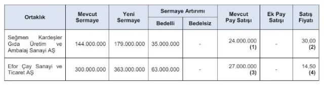 Açıklamaya göre Seğmen Kardeşler halka arzında mevcut ortaklardan Reyhan MOLLAOĞLU’na ait 2.000.000 TL nominal değerli, Yusuf SEĞMEN’e ait 2.000.000 TL nominal değerli, Emine SEĞMEN’e ait 2.000.000 TL nominal değerli, Oya YENER’e ait 2.000.000 TL nominal değerli, Meral YILDIRIM’a ait 2.000.000 TL nominal değerli, Neval ELALDIRSIN’a ait 2.000.000 TL nominal değerli, Nihal ÖZCANLI’ya ait 2.000.000 TL nominal değerli, Ömer SEĞMEN’e ait 2.000.000 TL nominal değerli, Gülsen SEĞMEN’e ait 2.000.000 TL nominal değerli, Birsen YAKA’ya ait 2.000.000 TL nominal değerli, Beyhan DEĞERLİ’ye ait 2.000.000 TL nominal değerli ve Ayhan SEĞMEN’e ait 2.000.000 TL nominal değerli payların satışı gerçekleştirilecek.