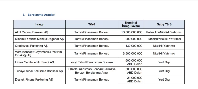 Borçlanma Aracı İhracına Onay Alan Şirketler